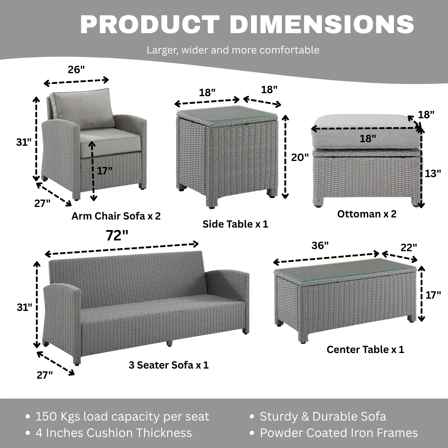 - Configuration: 2, 4, 6, 8 Seater